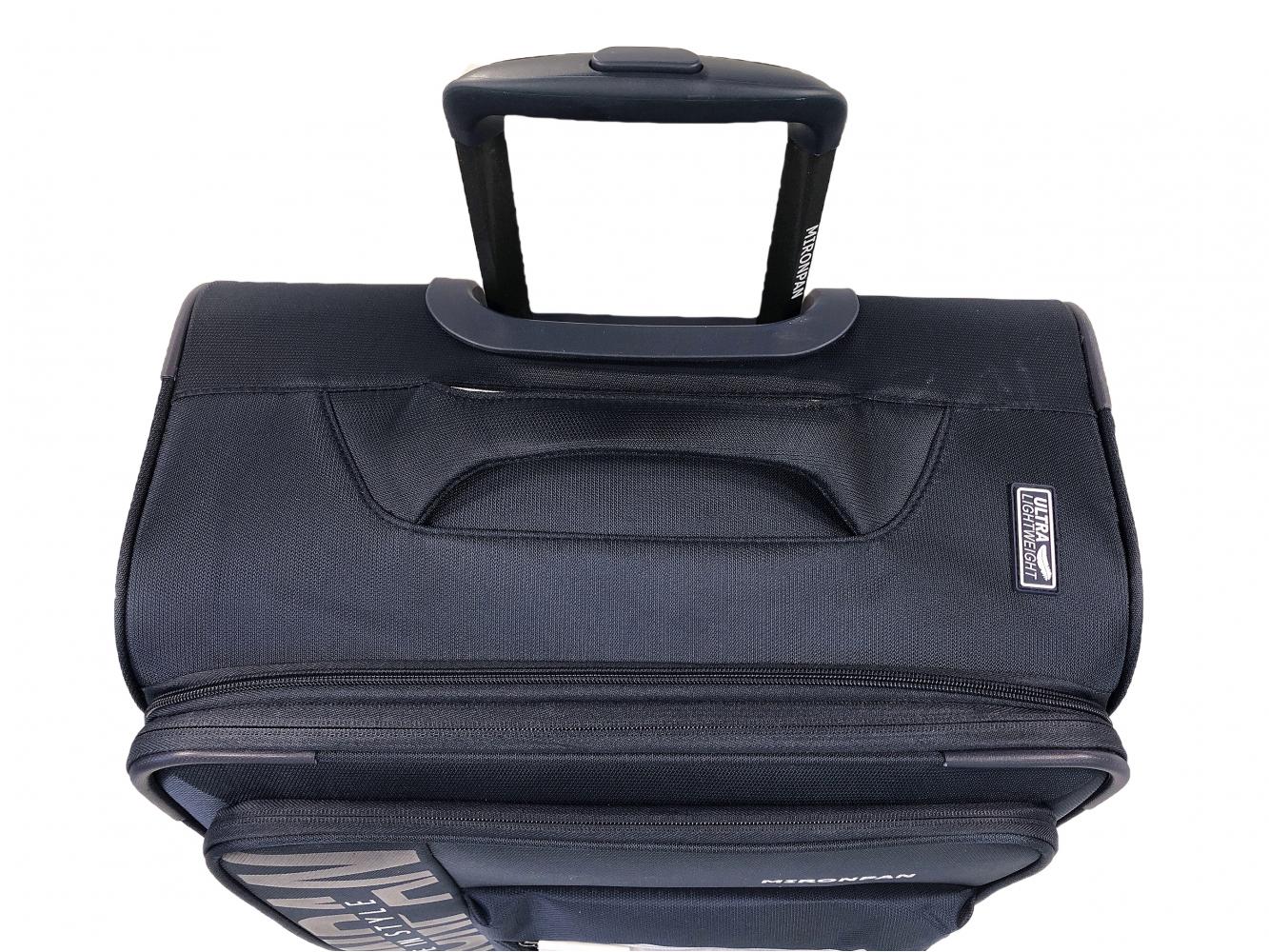 Конструкцией чемодана предусмотрена выдвижная телескопическая ручка, изготовленная из легкого и прочного дюралюминия, которая фиксируется в нескольких положениях для удобства использования людьми разного роста. Для переноски чемодана имеются две ручки, расположенные сверху и сбоку.