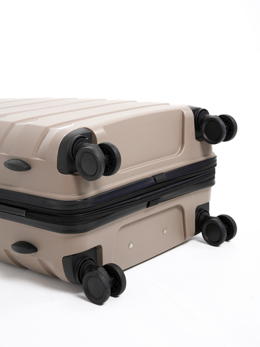 Чемодан оснащен 4 двойными шарикоподшипниковыми полиуретановыми колесами диаметром 6 см, которые вращаются на 360° и обеспечивают легкость движения в любом направлении и максимальное шумопоглощение при перевозке.